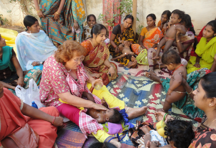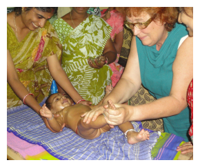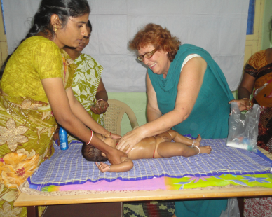 Gloria-B, Schutz performing the baby body massage, the mother and baby feeling very happy.